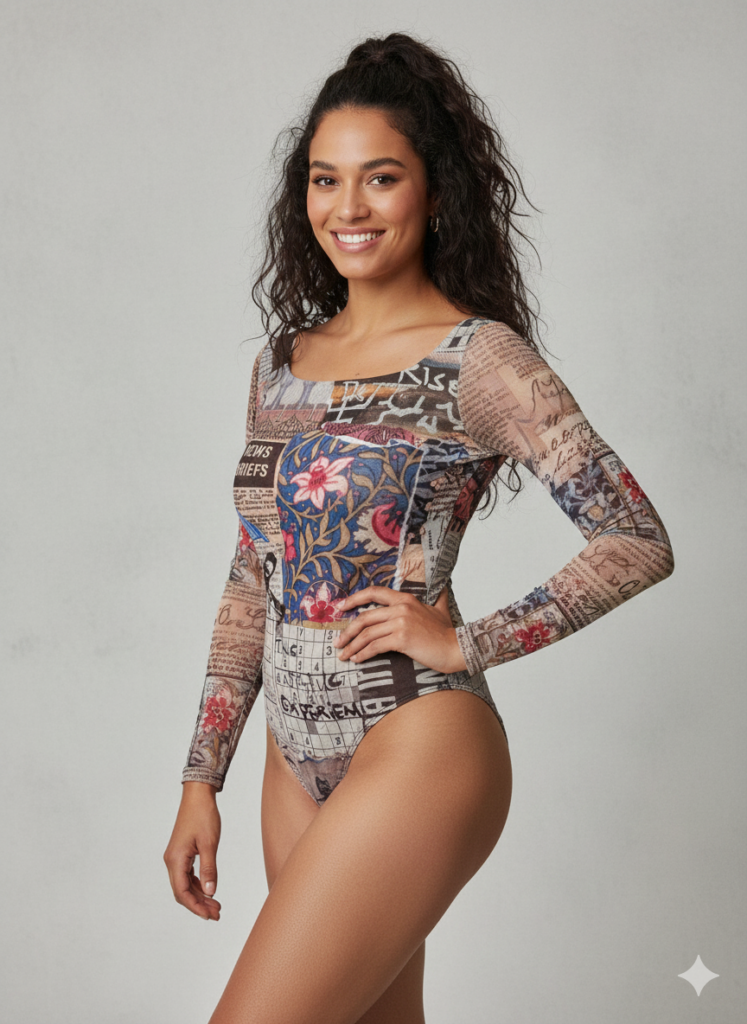 - Skład: 88% Poliester z recyklingu, 12% Elastan