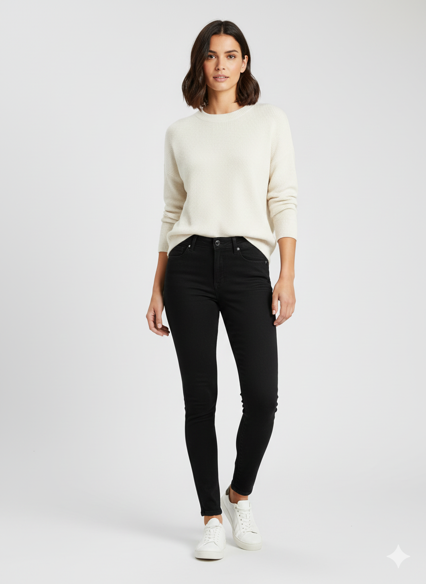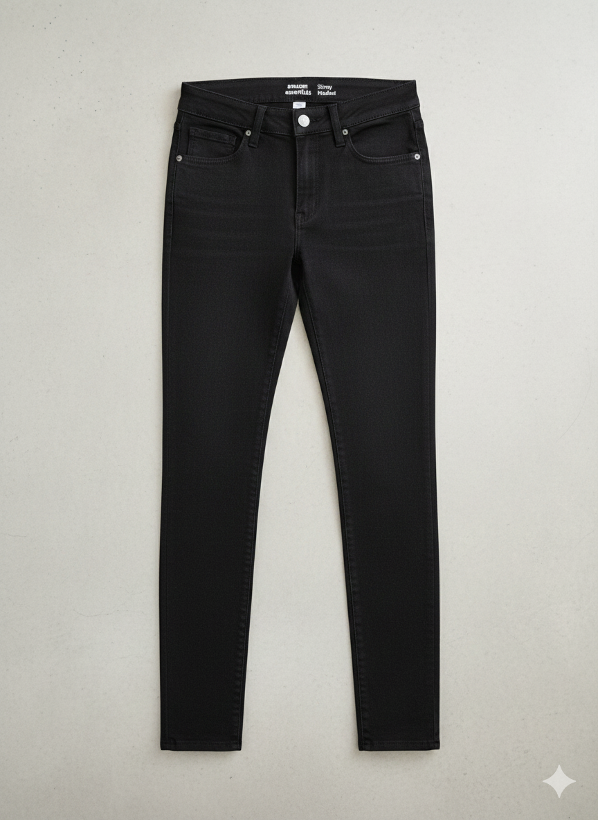 Na sprzedaż oferuję klasyczne, czarne jeansy damskie marki Amazon Essentials o fasonie Skinny. To idealna baza do każdej stylizacji – od casualowych zestawów z t-shirtem po eleganckie wyjścia z marynarką.