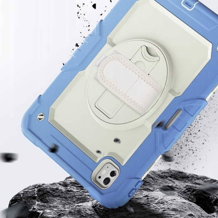 Niebieskie pancerne etui z paskiem na ramie i obrotową podstawką to doskonałe rozwiązanie dla użytkowników iPad Pro 11″ (2018, 2020, 2021) oraz iPad Air4/5 10.9″ (2020, 2022), którzy szukają wyjątkowej ochrony i funkcjonalności. Etui zostało wykonane z 3-warstwowej konstrukcji, łączącej twarde osłony PC z miękką silikonową powłoką zewnętrzną, co zapewnia kompleksową ochronę przed kurzem, wstrząsami, zadrapaniami i uderzeniami oraz innymi codziennymi uszkodzeniami. Wbudowana osłona ekranu PET dodatkowo chroni wyświetlacz przed zarysowaniami i uszkodzeniami. Dzięki precyzyjnym wycięciom, użytkownik ma łatwy dostęp do wszystkich portów, czujników, głośników i kamery.