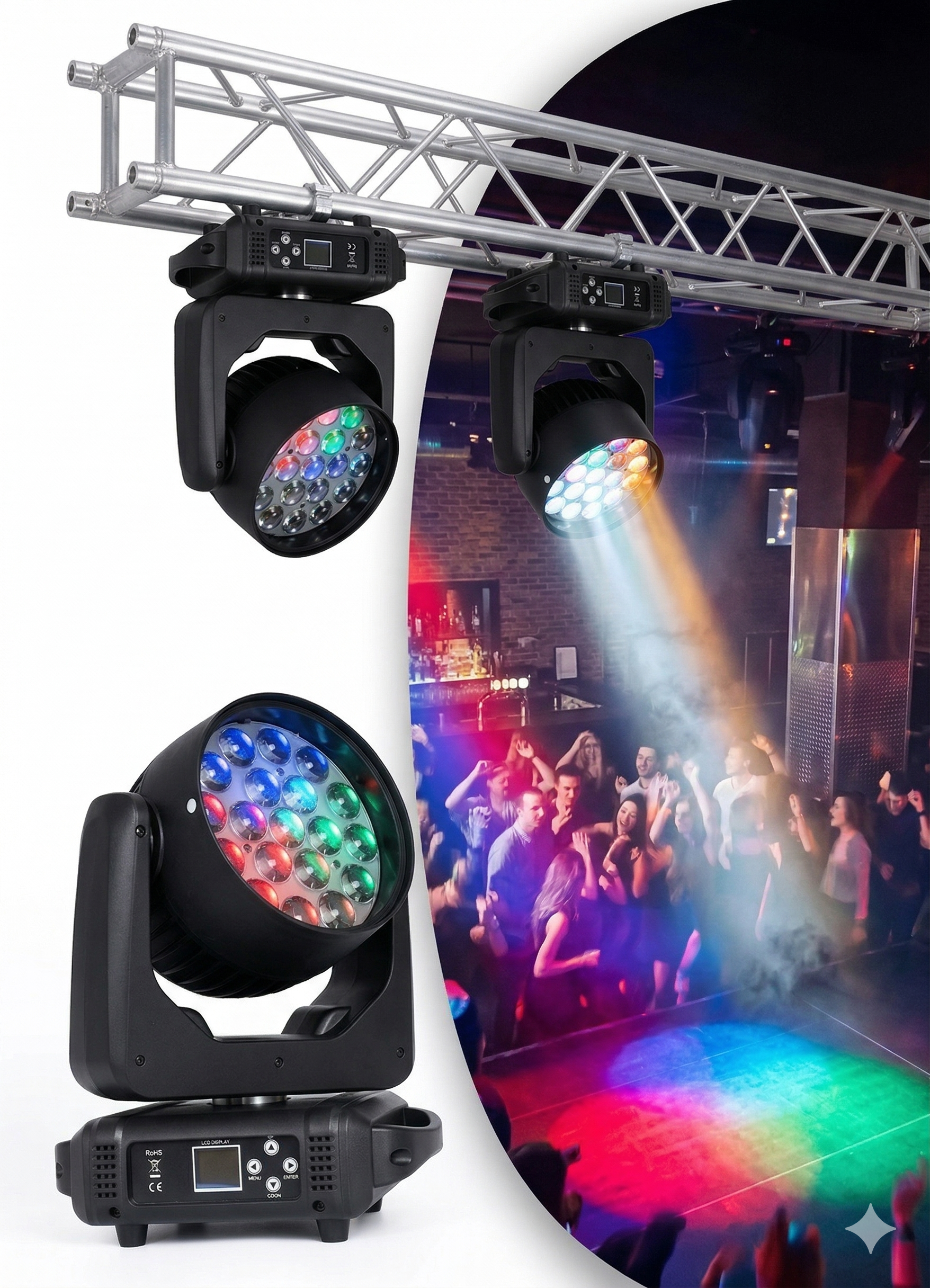 Prezentujemy niezawodną głowicę ruchomą typu Wash, zaprojektowaną z myślą o profesjonalnych scenach, klubach muzycznych oraz mobilnych DJ-ach. Urządzenie zostało wyposażone w 19 wysokowydajnych diod LED o mocy 15W każda, pracujących w pełnej palecie barw RGBW (czerwony, zielony, niebieski, biały). Dzięki temu możliwe jest uzyskanie zarówno nasyconych, żywych kolorów, jak i subtelnych, pastelowych odcieni.