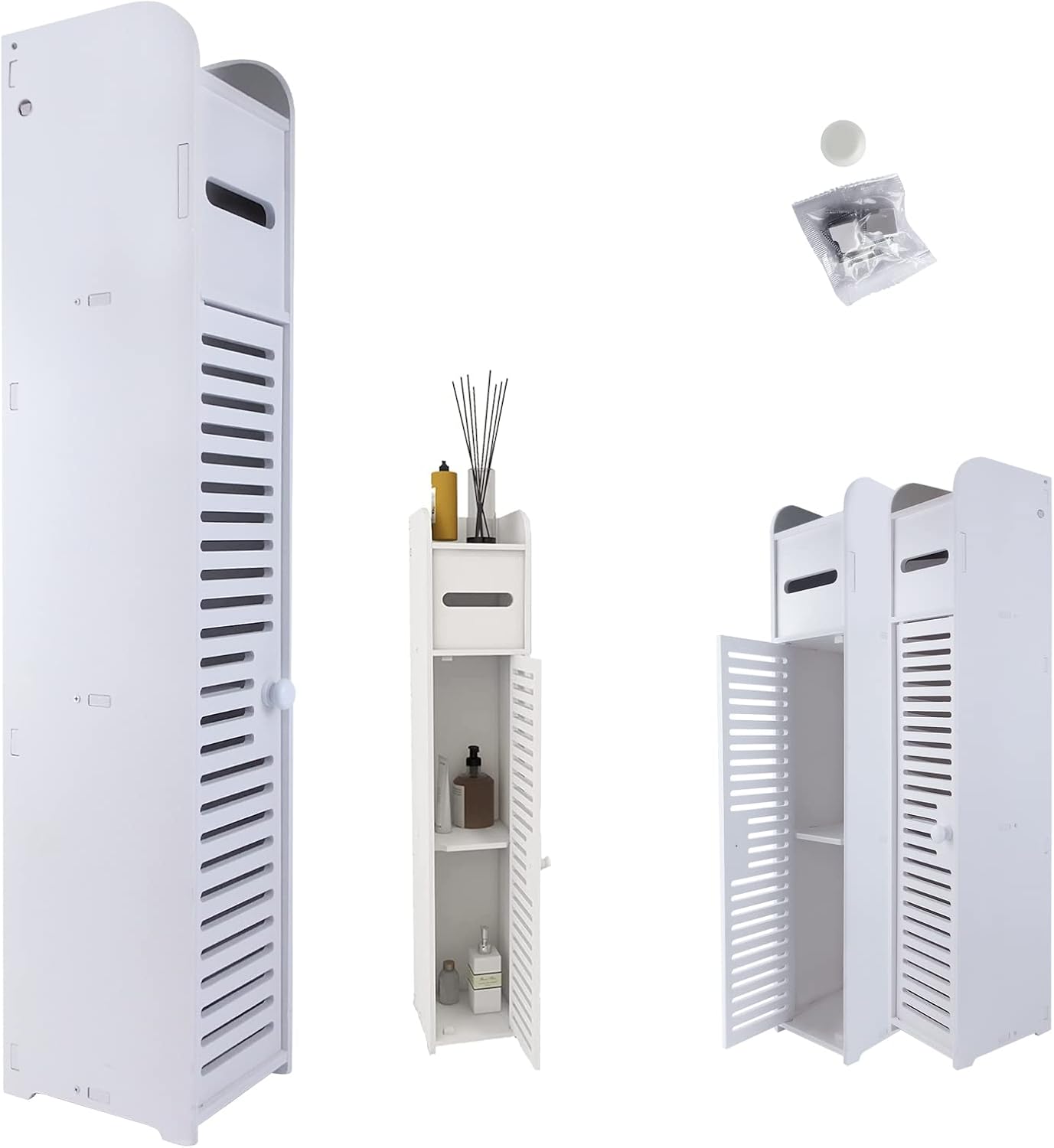 • 🌷[Łatwa instalacja] Ta szafka łazienkowa zawiera śruby i instrukcje, które należy użyć śrubokręta, aby przypomnieć o instalacji. Drzwi rolety można zainstalować po lewej lub prawej stronie szafki.