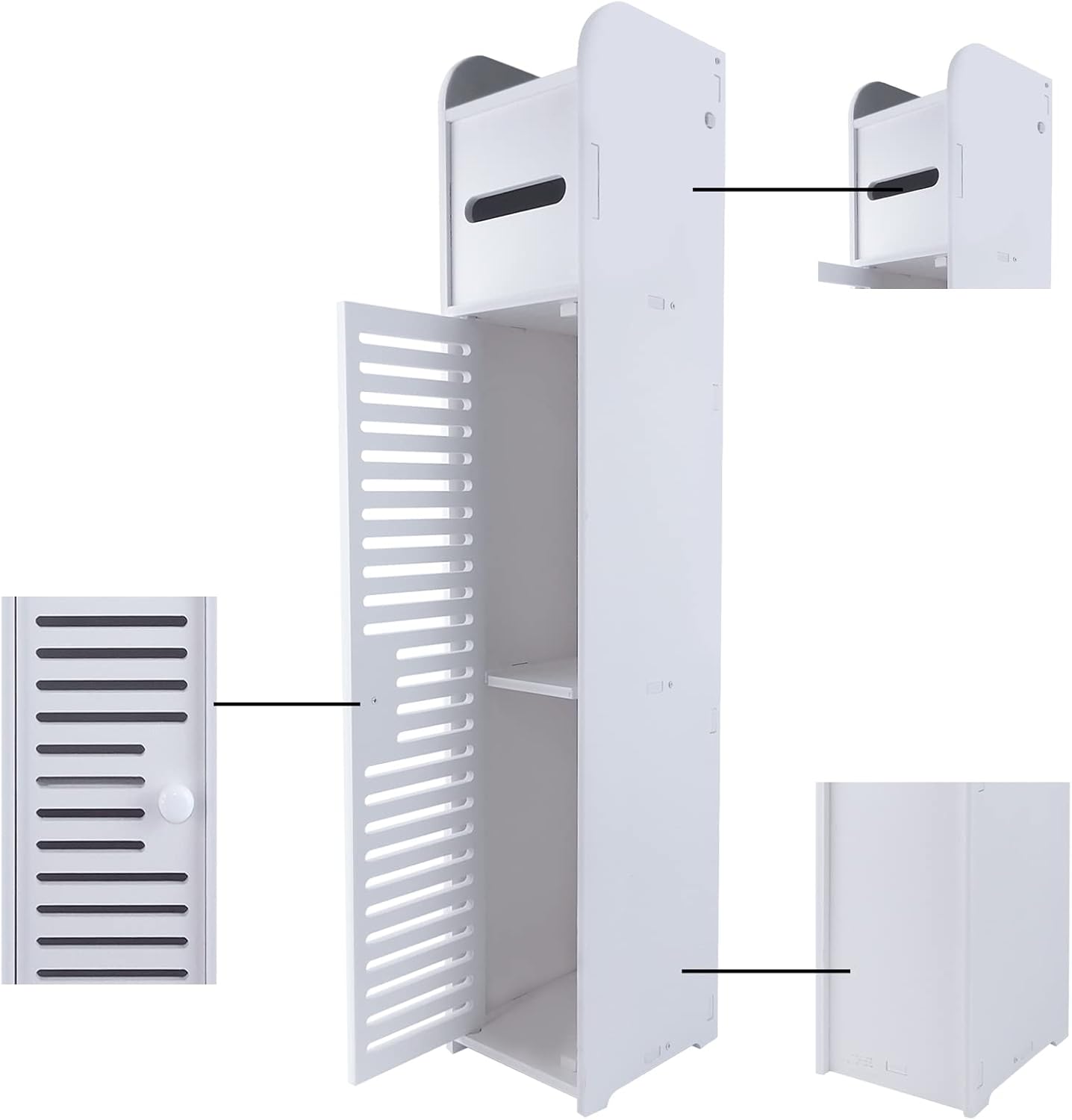 • ◈[Szafka łazienkowa] Ta szafka łazienkowa składa się z 1 blatu szafki + 1 przechowywania papieru toaletowego + 2 przegródek z 1 drzwiami. Należy pamiętać, że papier toaletowy może pomieścić zwykły papier toaletowy o wymiarach 4,5″ (dł.) x 10 cm (szer.) i nie może pomieścić dużych rolek papieru toaletowego.