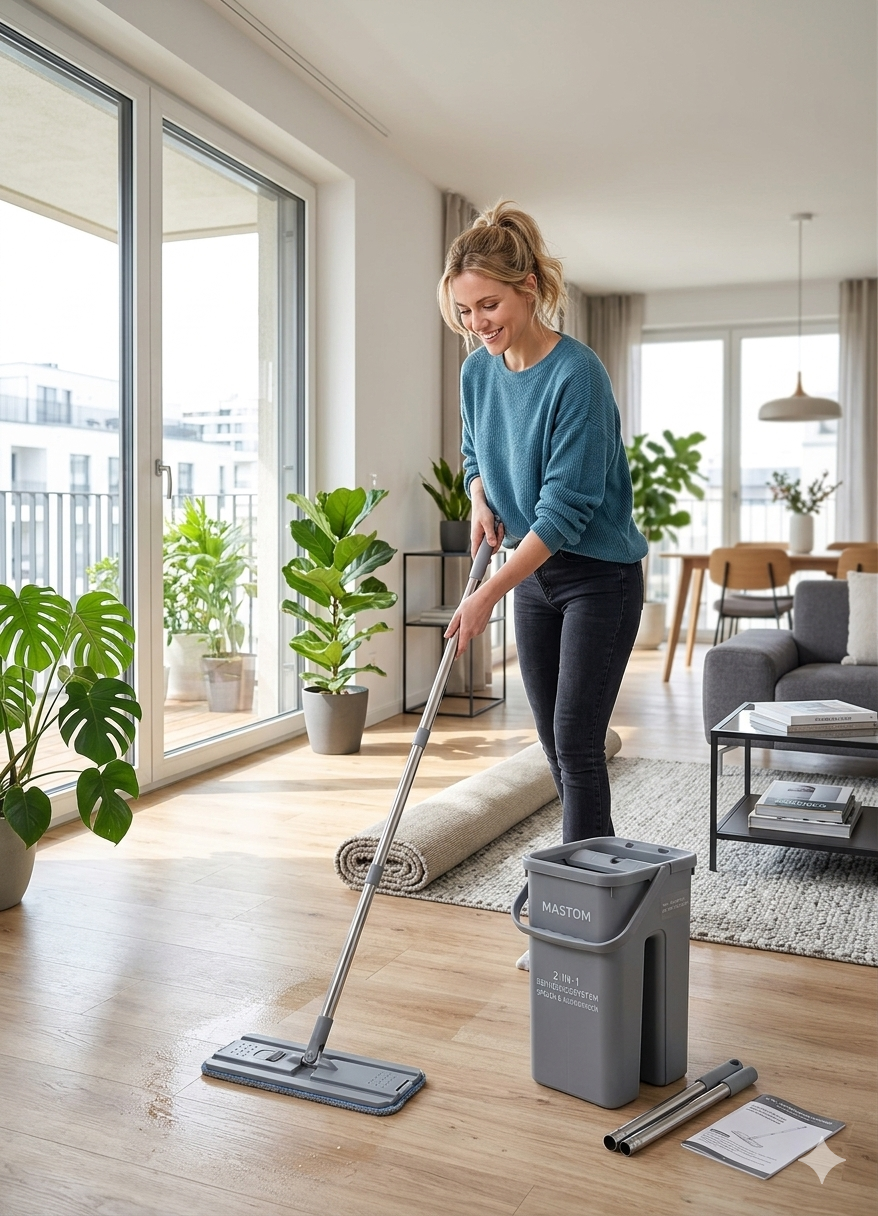 Usprawnij codzienne porządki dzięki zaawansowanemu systemowi czyszczącemu 2-w-1. Ten kompaktowy zestaw z płaskim mopem i innowacyjnym wiadrem pozwala na błyskawiczne mycie podłóg bez konieczności moczenia rąk. Wyposażony w wytrzymały gryf ze stali nierdzewnej oraz chłonne nakładki z mikrofibry, skutecznie usuwa kurz, plamy i sierść z każdego rodzaju powierzchni – od paneli po płytki. Dwukomorowa konstrukcja wiadra oddziela brudną wodę od czystej, gwarantując higieniczną czystość przy minimalnym wysiłku