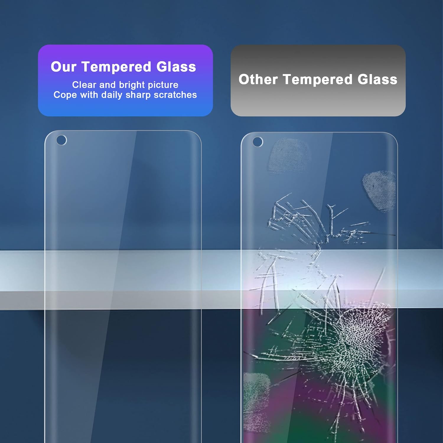 - Twardość 9H: wzmocnione szkło zapewnia dwukrotnie większą trwałość w porównaniu do tradycyjnych folii ochronnych. Nawet w przypadku wystąpienia pęknięć, zapewniona jest obróbka zapobiegająca rozproszeniu, która nie ma rozproszonych fragmentów.