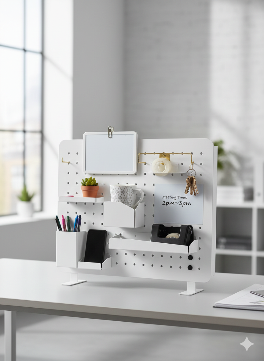 Zmień chaos w kreatywny porządek! Przedstawiamy stylowy i funkcjonalny Pegboard Kit – idealne rozwiązanie dla każdego, kto ceni sobie czyste miejsce pracy, estetykę i dobrą organizację.