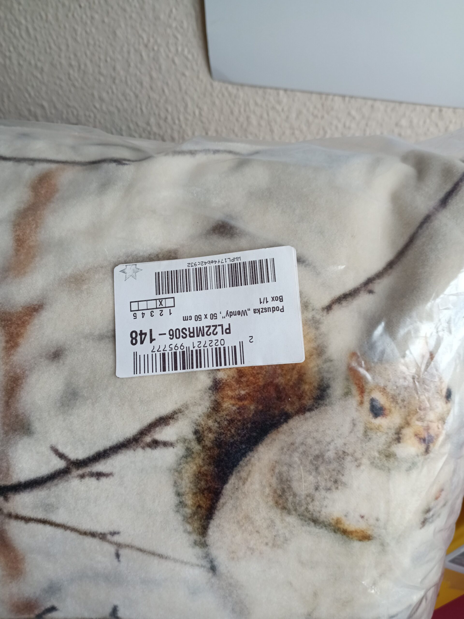 miekka poduszka dekoracyjna, poszewka bawełna ze wzorem w wiewiórki a wypełnienie to pierze, idealne do domu elegancji, stylu, ceniącego wygodę i wspomnienia
