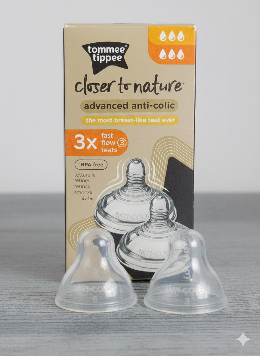 Przepływ 3 (Fast Flow): Optymalna prędkość wypływu pokarmu dla starszych niemowląt (6m+), które potrzebują większych porcji w krótszym czasie.